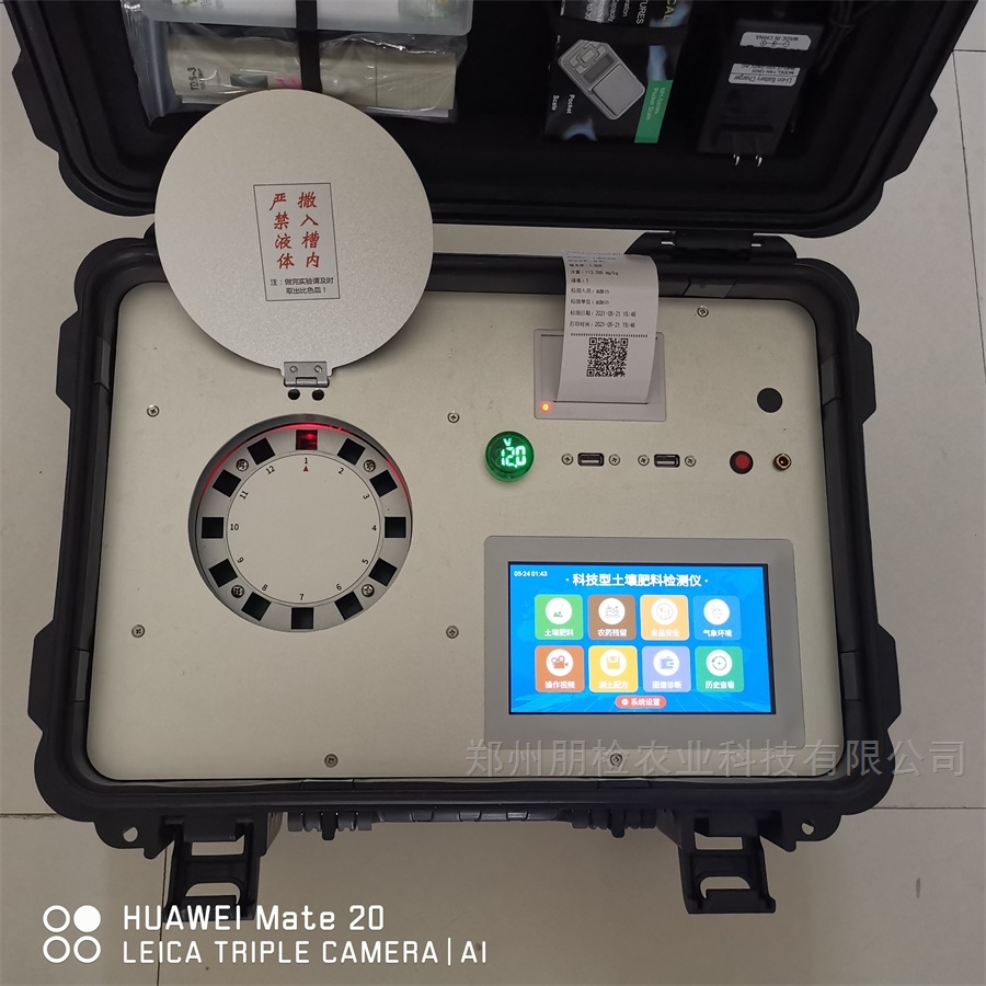 10、内置新一代高速热敏打印机(无需色带),打印内容包含:检测单位、检测人员、检测项目、通道号 、吸光度、养分含量(mg/kg)、检测时间、以及二维码等信息